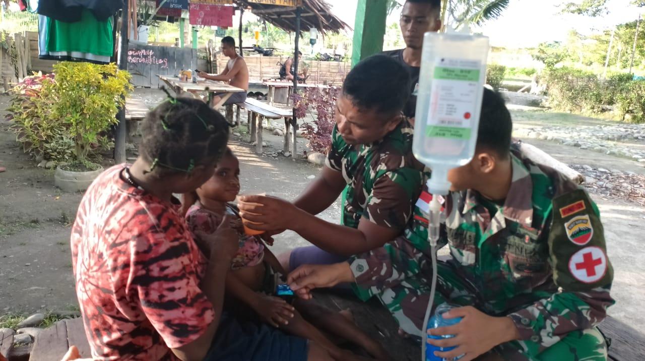 “Dari keterangan sang Ibu Koah Kumi (45), Alin sudah tiga hari mengalami demam tinggi, namun bingung untuk berobat karena kendala biaya sehingga dirinya membawa Alin ke Pos Batom,” ungkap Dansatgas.