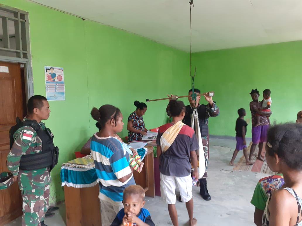 Anak-Anak Sehat Dan Kuat, Satgas Yonif 126/KC Gandeng Puskesmas Model Laksanakan Pelayanan Posyandu