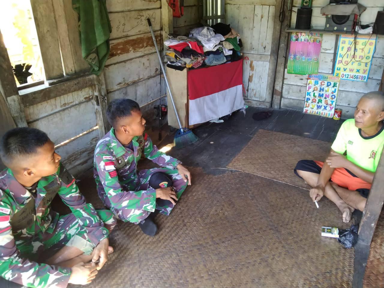 Anggota Satgas Pamtas Yonarmed 19/Bogani Pos Nanga Bayan Jalin Silaturahmi dengan Masyarakat Sekitar