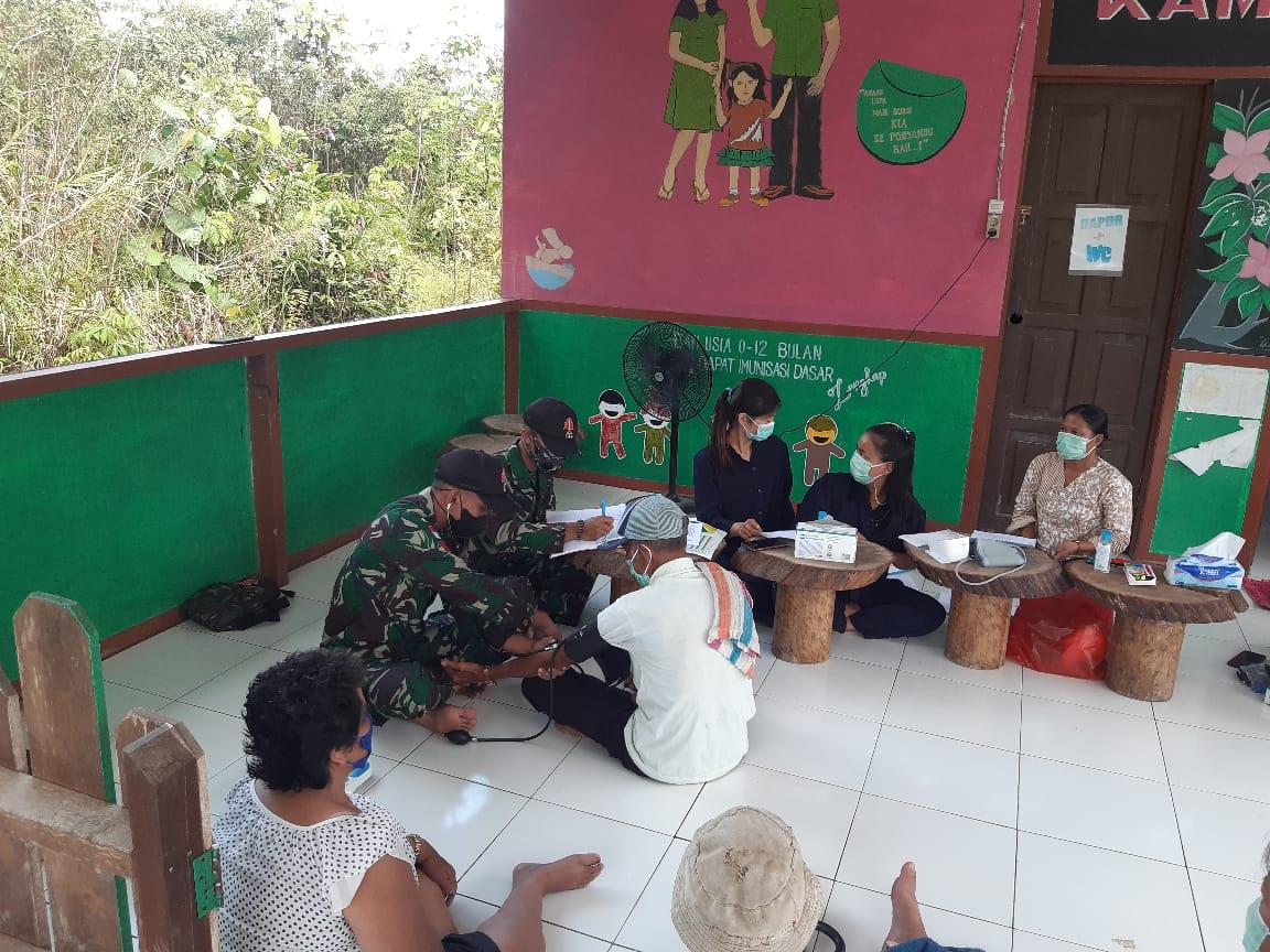 Anggota Satgas Yonif 144/JY Melaksanakan Posyandu Lansia Bersama Nakes Puskesmas di Perbatasan