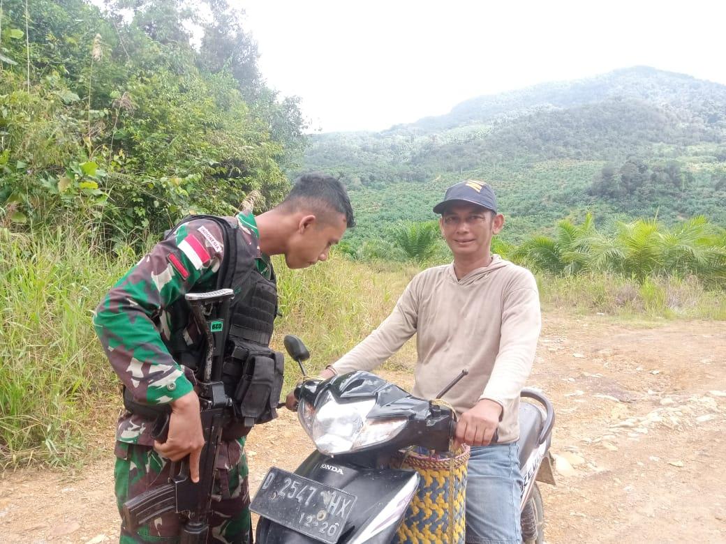 Antisipasi Kegiatan Ilegal, Satgas Pamtas RI-Malaysia Yonarmed 19/105 Trk Bogani Periksa Kendaraan yang Melintas di Jalan Perbatasan
