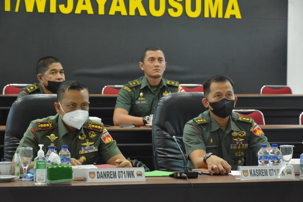 BANYUMAS – Untuk mengantisipasi melonjaknya kasus Penyakit Mulut dan Kuku (PMK) di wilayah Jawa Tengah, Danrem 071/Wijayakusuma Kolonel Inf Yudha Airlangga, S.E., ikuti Video Conference yang diselenggarakan oleh Pemerintah Provinsi Jawa Tengah dan Kodam IV/Diponegoro, Rabu (13/7/2022) di Ruang Puskodal Ops Makorem 071/Wijayakusuma, Sokaraja, Banyumas.