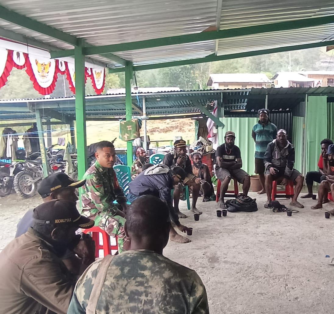 Kegiatan Komsos dilaksanakan bersama dengan tokoh masyarakat setempat untuk menjalin silaturahmi, guna terjalinnya komunikasi yang baik dengan masyarakat setempat dan stabilitas keamanan di wilayah Distrik Beoga.