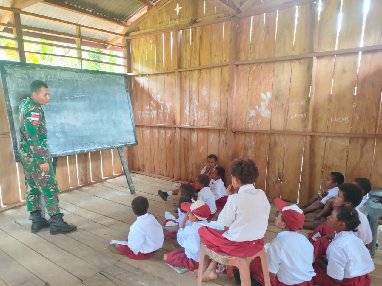 Bak Pelita, Personel Satgas Pamtas Yonif 126/KC Mengajar Anak-Anak Di Perbatasan Papua