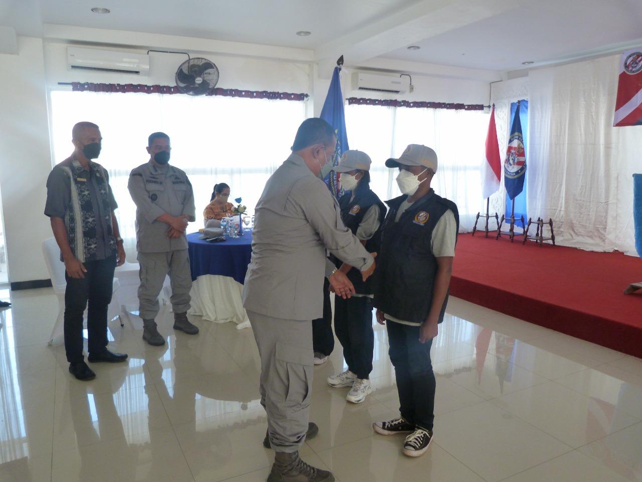 AMBON – (Bakamla RI/Indonesia Coast Guard). Kepala Kantor Kamla Zona Maritim Timur Laksma Bakamla Arif Sumartono bersama Direktur Kerja sama Kolonel Bakamla Purwanto Djoko secara resmi mengukuhkan 30 Relawan Penjaga Laut Nusantara (Rapala) di Aula Salah Satu Hotel di Kota Ambon, Jumat (22/4/2022).