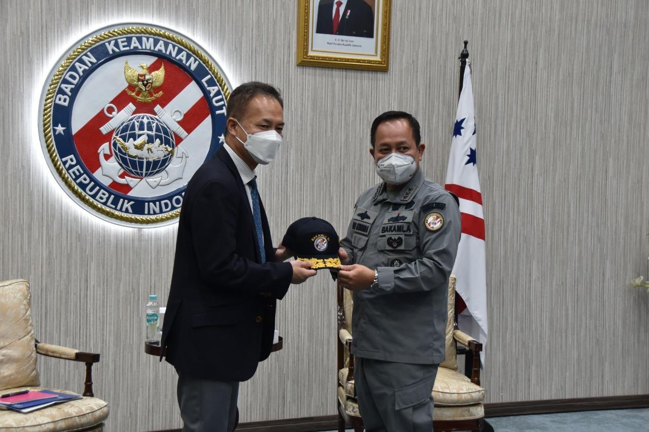 Dalam pertemuan Kepala Bakamla RI di dampingi oleh Deputi Kebijakan dan Strategi Bakamla RI Laksda Bakamla Tatit E. Witjaksono, S.E., M.Tr.(Han), Deputi Operasi dan Latihan Bakamla RI Laksda Bakamla I Gusti Kompiang, Direktur Kerja Sama Bakamla RI Laksma Bakamla Purwanto Djoko P., Direktur Penelitian dan Pengembangan Bakamla RI Laksma Bakamla Oki Samudra, S.E., M.M., serta Kepala Biro Sarana dan Prasarana Laksma Bakamla Supriatno, M.Tr.(Han).