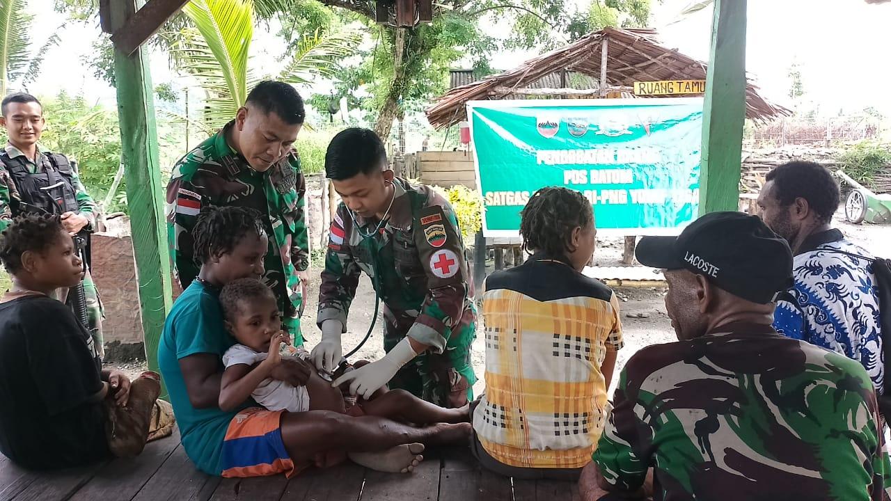 Bantu Atasi Keluhan Warga Perbatasan Papua, Satgas Yonif 126/KC Keliling Kampung Berikan Pengobatan Gratis