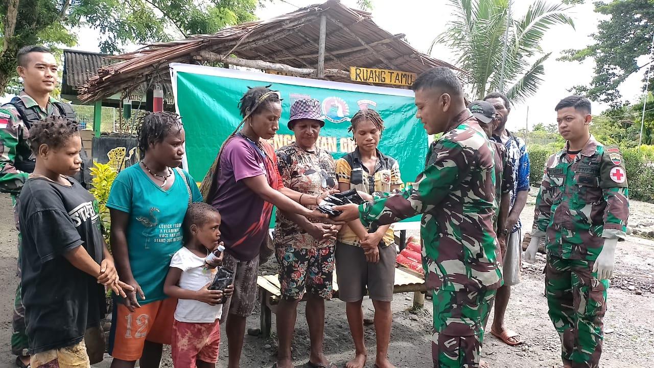 Bantu Atasi Keluhan Warga Perbatasan Papua, Satgas Yonif 126/KC Keliling Kampung Berikan Pengobatan Gratis