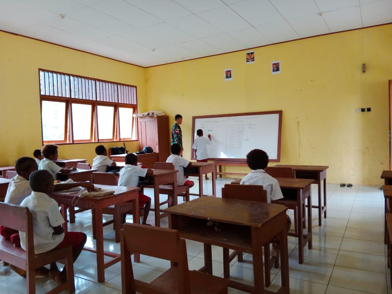 Bantu Cerdaskan Anak Bangsa, Anggota Satgas Yonif 126/KC Menjadi Gadik di Perbatasan