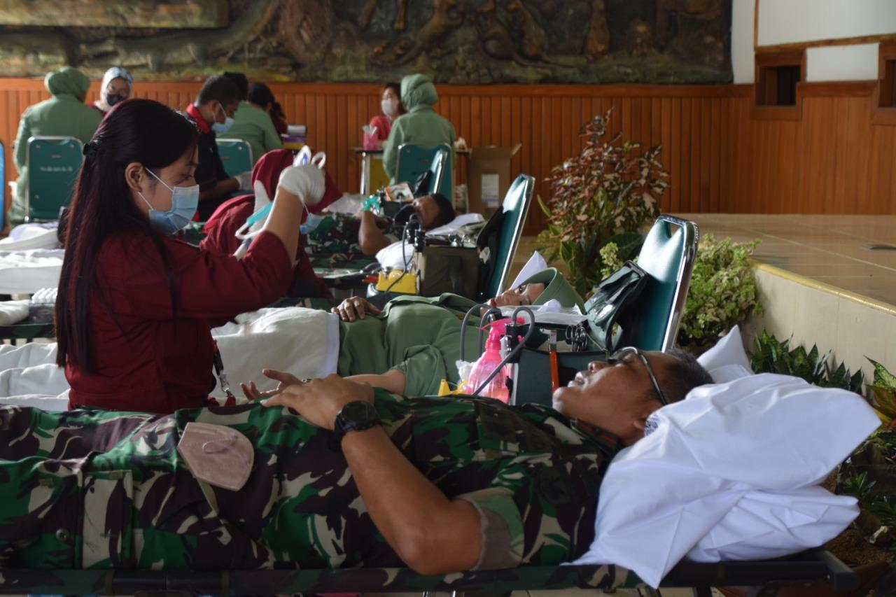 Bantu Kesulitan Masyarakat Merauke, Korem 174/ATW Merauke Sumbangkan 124 Kantong Darah Hasil Donor Darah Dalam Rangka HUT Persit KCK Ke-76 Tahun 2022