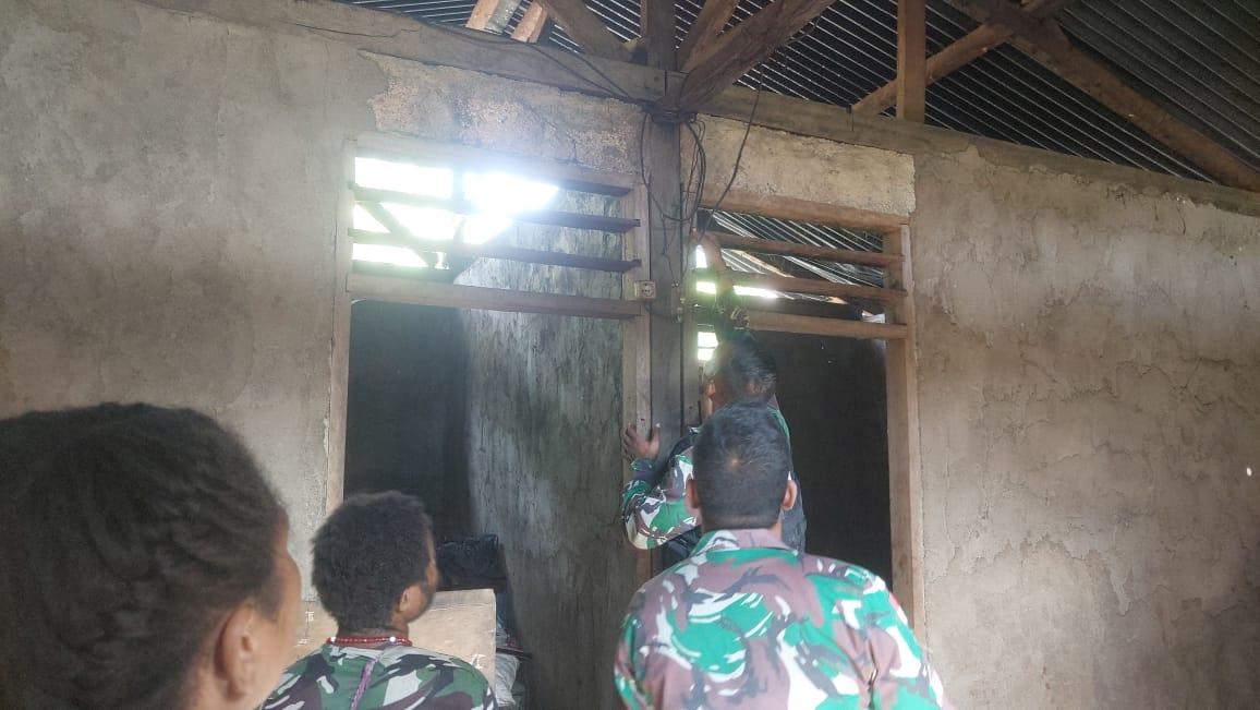 KEEROM – Personel Satgas Pamtas RI-PNG Yonif 126/KC Pos Kalipay, memberikan bantuan perbaikan instalasi listrik di rumah Bapak Natalius (42) salah satu warga di perbatasan Papua-PNG yang mengalami korsleting listrik di Kampung Kalipay, Distrik Waris, Kabupaten Keerom.