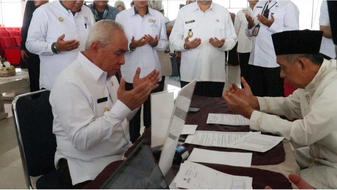 Auasana penyerahan zakat berlangsung dilingkungan pemprov, Gubernur Isran Noor menyerahkan zakatnya dan diterima KH Muhammad Rasyid, sementara wakilnya Hadi Mulyadi menyerahkan zakatnya dan diterima oleh Muhammad Haiban.