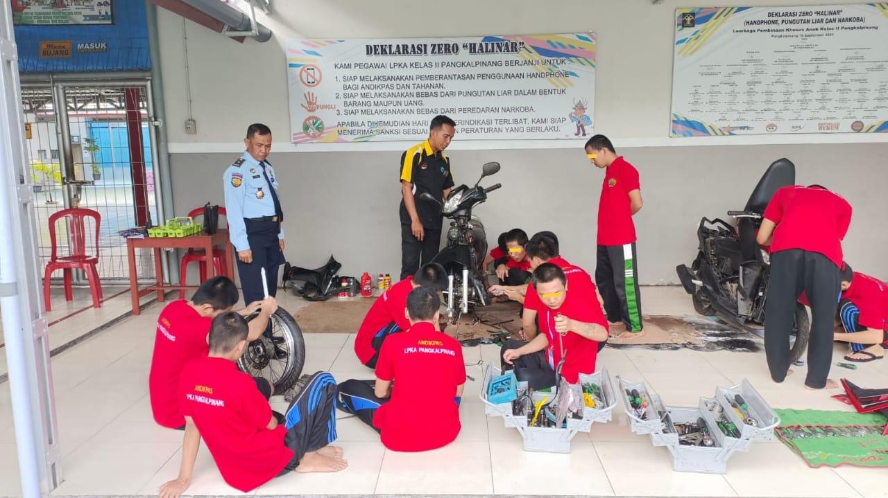 PANGKALPINANG – Setidaknya 19 orang anak didik pemasyarakatan (Andikpas) LPKA Kelas II Pangkalpinang Kanwil Kemenkumham Babel mengikuti pelatihan service kendaraan bermotor, Selasa (27/09/2022).
