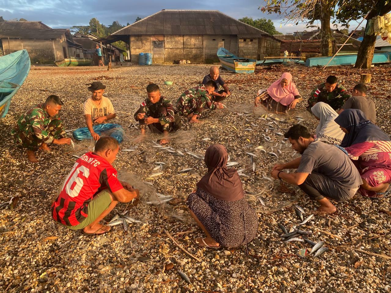 AMBON -Kepedulian sosial terus ditunjukkan Satgas Satuan Organik Yonarmed 1 Kostrad di daerah penugasan, seperti yang dilakukan anggota Pos Ramil Wamsisi saat melaksanakan Komunikasi Sosial (Komsos) sekaligus membantu para nelayan Desa Waelikut, Kabupaten Buru Selatan, menyiapkan sarana dan prasarana untuk melaut.