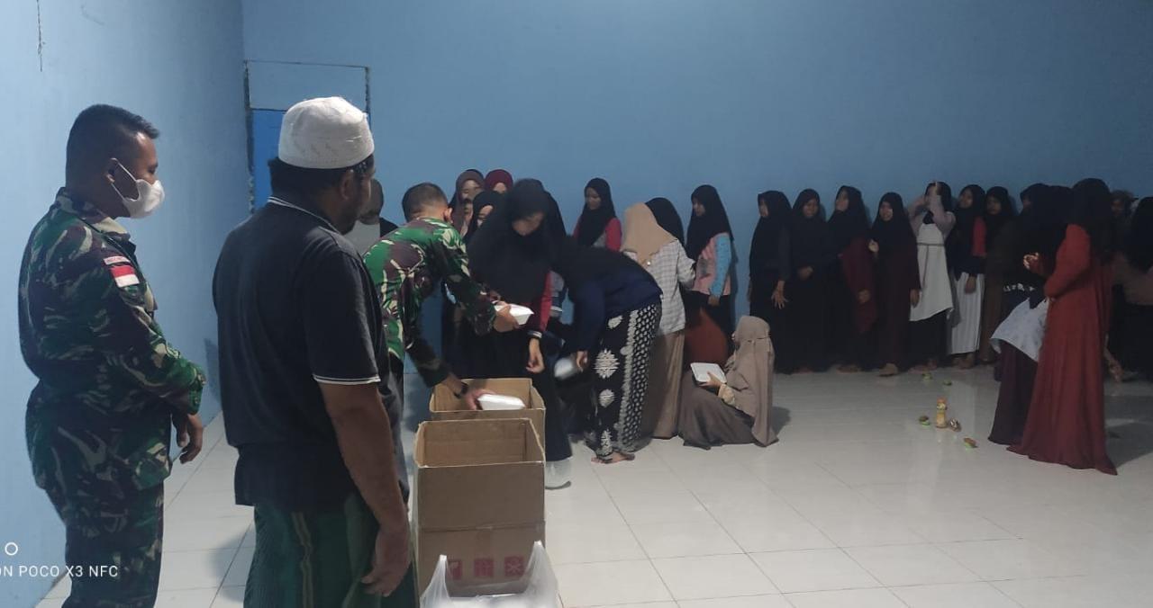 Berbagi Berkah Ramadhan, Satgas Pamtas Yonif Mekanis 643/Wns Bagikan Takjil Kepada Santri di Ponpes Perbatasan