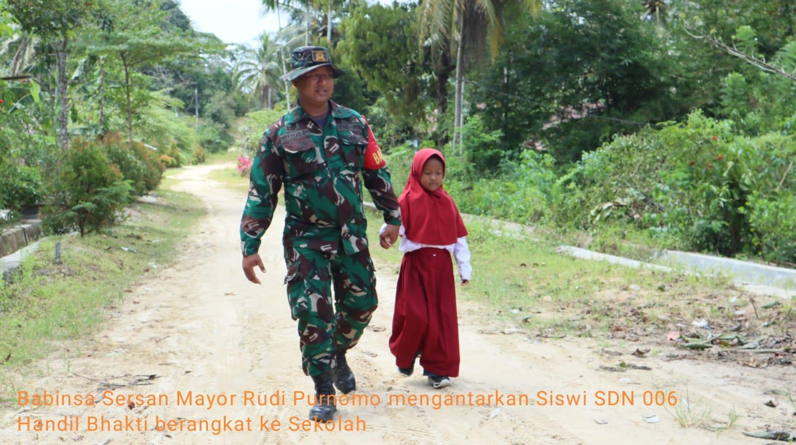Babinsa Handil Bhakti Sersan Mayor Rudi Purnomo mengutarakan keprihatinannya melihat anak-anak yang berangkat ke Sekolah harus berjuang keras untuk sampai ke Sekolah.