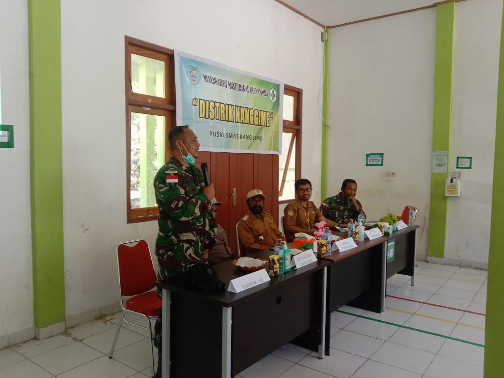 Menanggapi hal tersebut, Danpos Kanggime Satgas Pamtas Yonif Raider 142/KJ Letda Inf Ruri yang turut hadir menyampaikan bahwa dari pihak Satgas memberikan masukan bahwa ke depan distrik ini perlu merencanakan pembuatan jamban dan bak sampah dengan melibatkan masyarakat, unsur yang ada, terutama tenaga medis dan kesehatan dari Puskesmas Kanggime. “Kita berharap kebaikan bagi sesama, bahwa distrik ini bisa tampil bersih, aman rapih dan indah itu pasti keinginan semuanya,” ungkapnya.