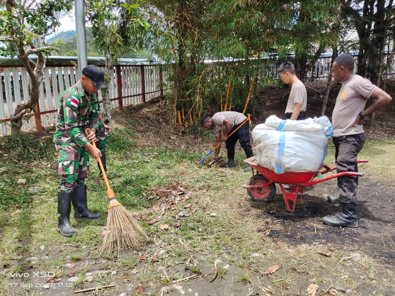 Bersinergi, Satgas Yonif Raider 142/KJ Membangun Gapura dan Pagar Gereja Di Tolikara