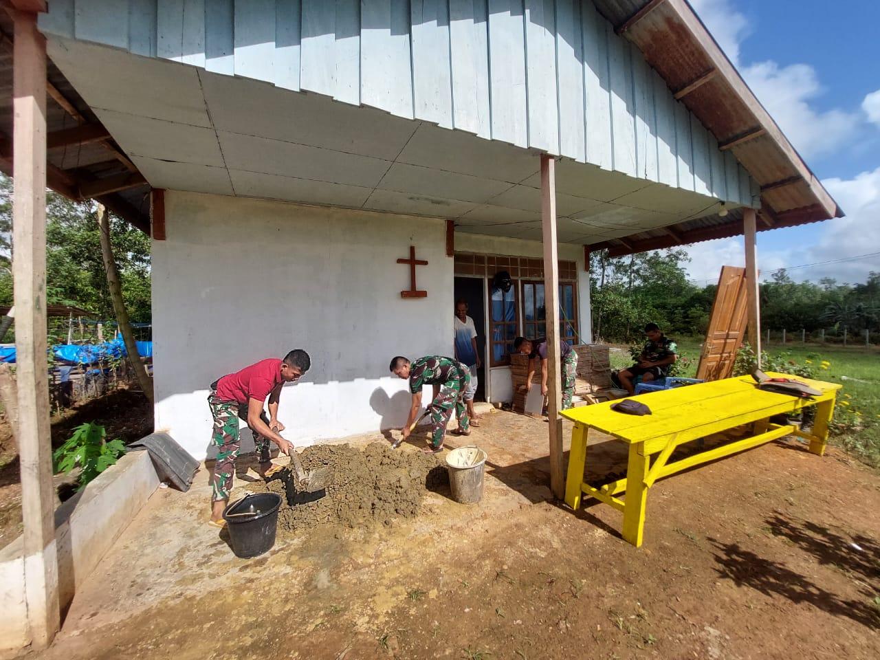 Bukti Cinta kepada Warga, Prajurit Satgas Yonif 123/Rajawali Bantu Renovasi Rumah Pendeta