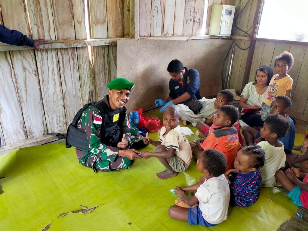Cegah Penyakit Filariasis, Satgas Yonif 126/Kala Cakti Periksa Kesehatan Anak Papua