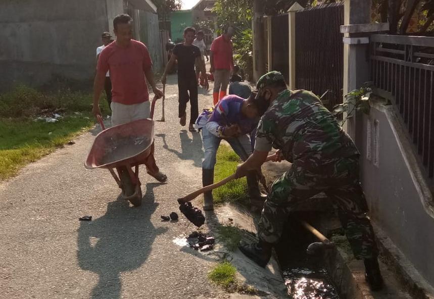 Ciptakan Lingkungan Bersih dan Nyaman, Babinsa Bersama Warga Bersih-Bersih Gampong
