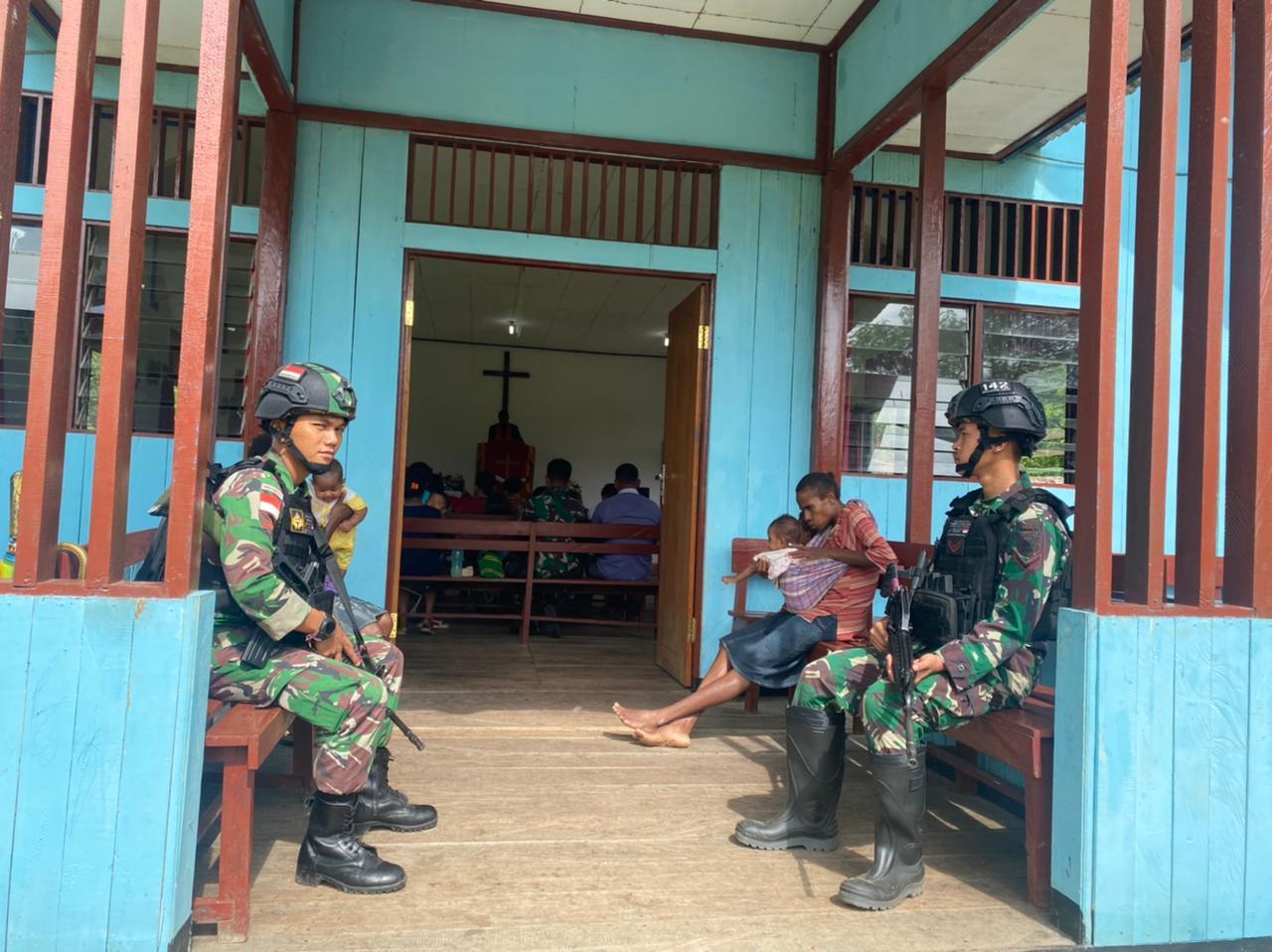 DABRA, MAMBERAMO RAYA – Personel Satgas Pamtas RI-PNG Yonif Raider 142/KJ Pos Dabra melaksanakan kegiatan pengamanan Gereja dan melakukan pembersihan Masjid, bertempat di Kampung Dabra, Distrik Mamberamo Hulu, Kabupaten Mamberamo Raya, Papua, Minggu (24/7/2022).