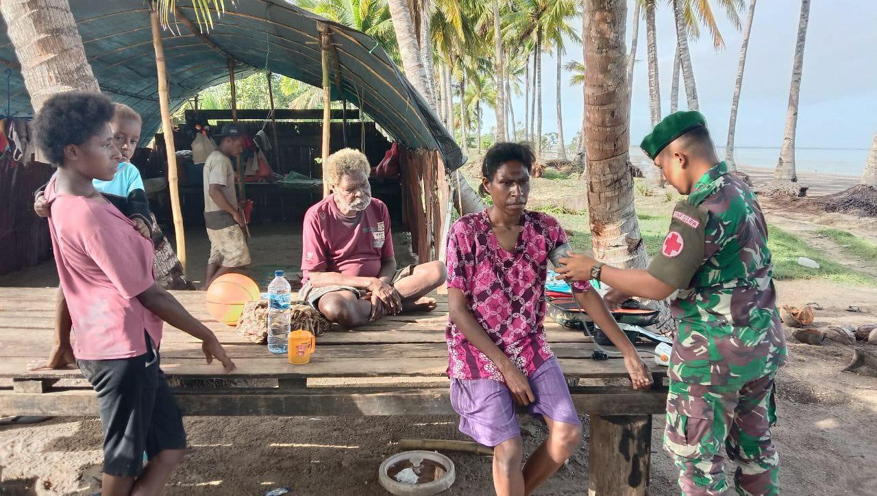 Cuaca Tak Menentu, Satgas Yonif 123/RW Himbau Masyarakat Perbatasan Jaga Kesehatan dan Bagikan Vitamin