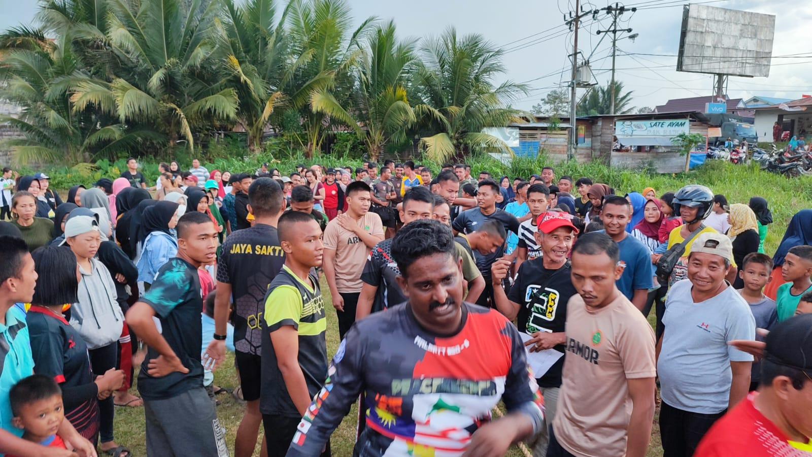 Dalam Rangka Memeriahkan Perayaan HUT RI Ke-77, Personel Satgas Pamtas RI-Malaysia Yonarmed 19/105 Trk Bogani Mengikuti Lomba Tarik Tambang Bersama Masyarakat Badau