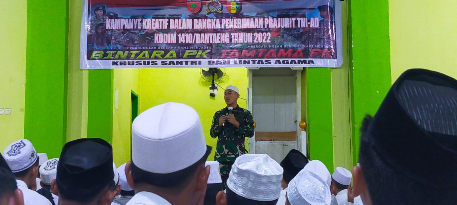 Dandim 1410/Btg Letkol Arm Gatot Awan Febrianto kampanye Kreatif Penerimaan Prajurit TNI-AD tahun 2022 di Pondok Pesantren As'adiyah Dapoko