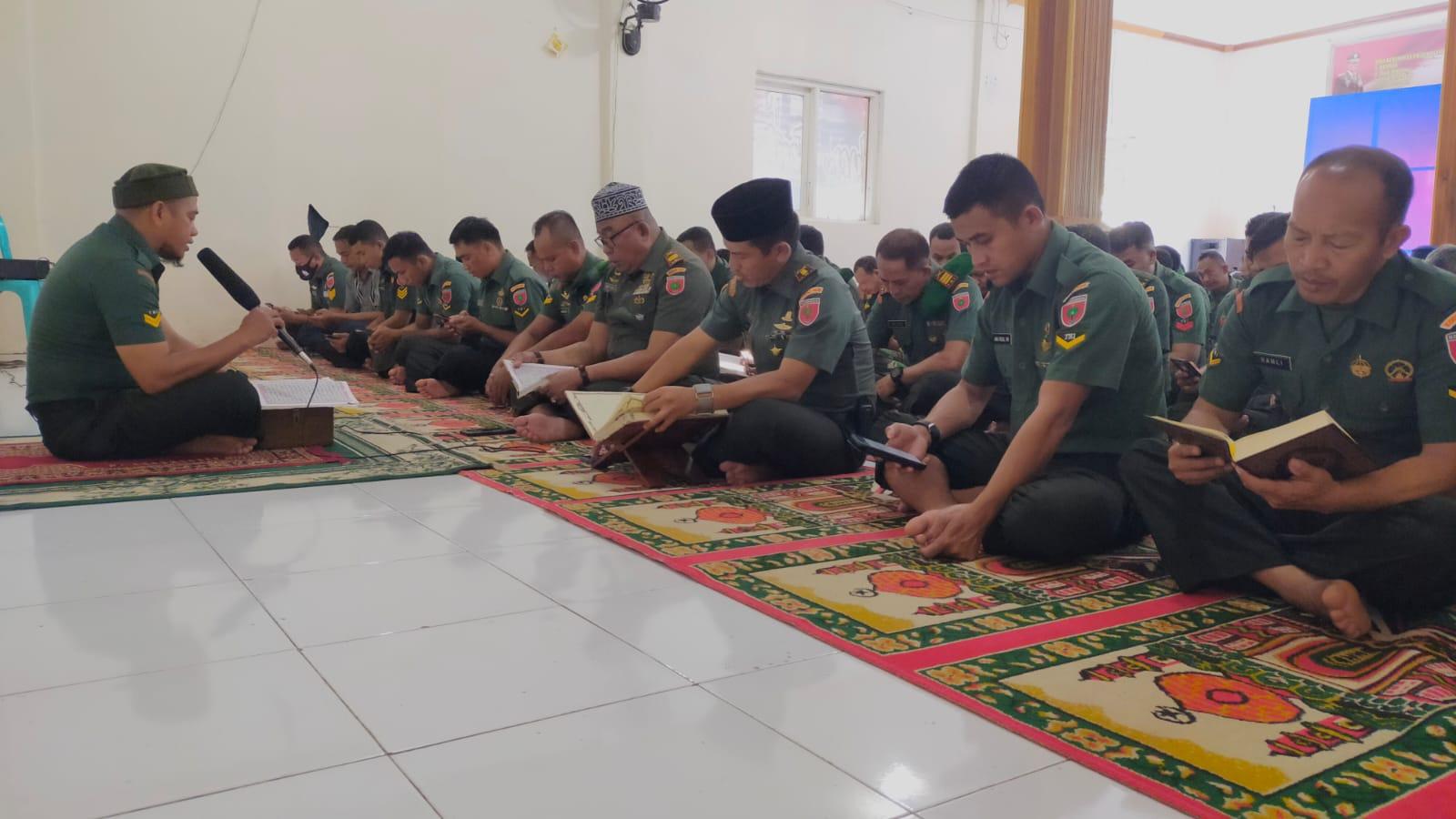 Sebelum mulai bekerja didahului dengan bersama-sama mengaji/ taddarus Al-Qur’an, dengan harapan prajurit dalam menjalankan tugas di wilayah berada dalam lindungan Allah SWT.