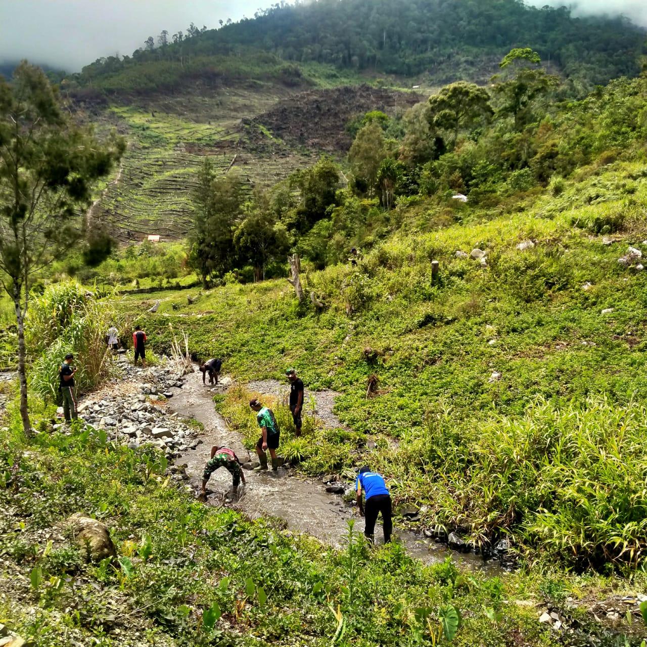 Selama ini salah satu penyebab berkurangnya debit air dikarenakan adanya batu batuan yang menghambat arus sungai sehingga air sungai berbelok arah apalagi di awal musim hujan seperti ini banyak sekali kayu, daun dan bebatuan yang menghambat aliran arus sungai. (Pen Kodim 1714/Puncak Jaya)