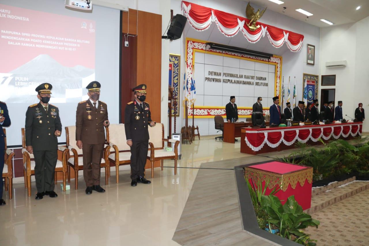 Acara rapat paripurna DPRD Babel kali ini, yakni Mendengarkan Pidato Kenegaraan Presiden RI Memperingati Hari Ulang Tahun Kemerdekaan Republik Indonesia ke-77