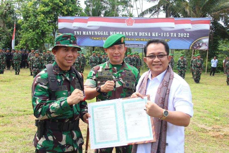 TMMD menjadi sarana terbaik TNI untuk membangun manunggal dengan masyarakat dengan tema ” TMMD dedikasi terbaik membangun NKRI. Kepada pemerintah daerah dan masyarakat untuk terus bekerjasama dengan TNI dalam membangun daerah dan mengatasi berbagai permasalahan juga termasuk menjaga pertahanan negara didaerah demi tegaknya kedaulatan NKRI. Berbagai program telah di wujudkan di TMMD 115 ini dan digunakan sebaik- baiknya untuk kepentingan seluruh warga masyarakat.