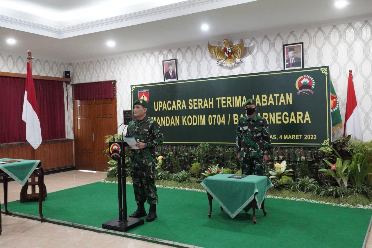 Danrem meminta agar pejabat baru Dandim 0704/Banjarnegara dapat segera beradaptasi dan serah terimakan yang baik antara pejabat baru dengan pejabat lama.
