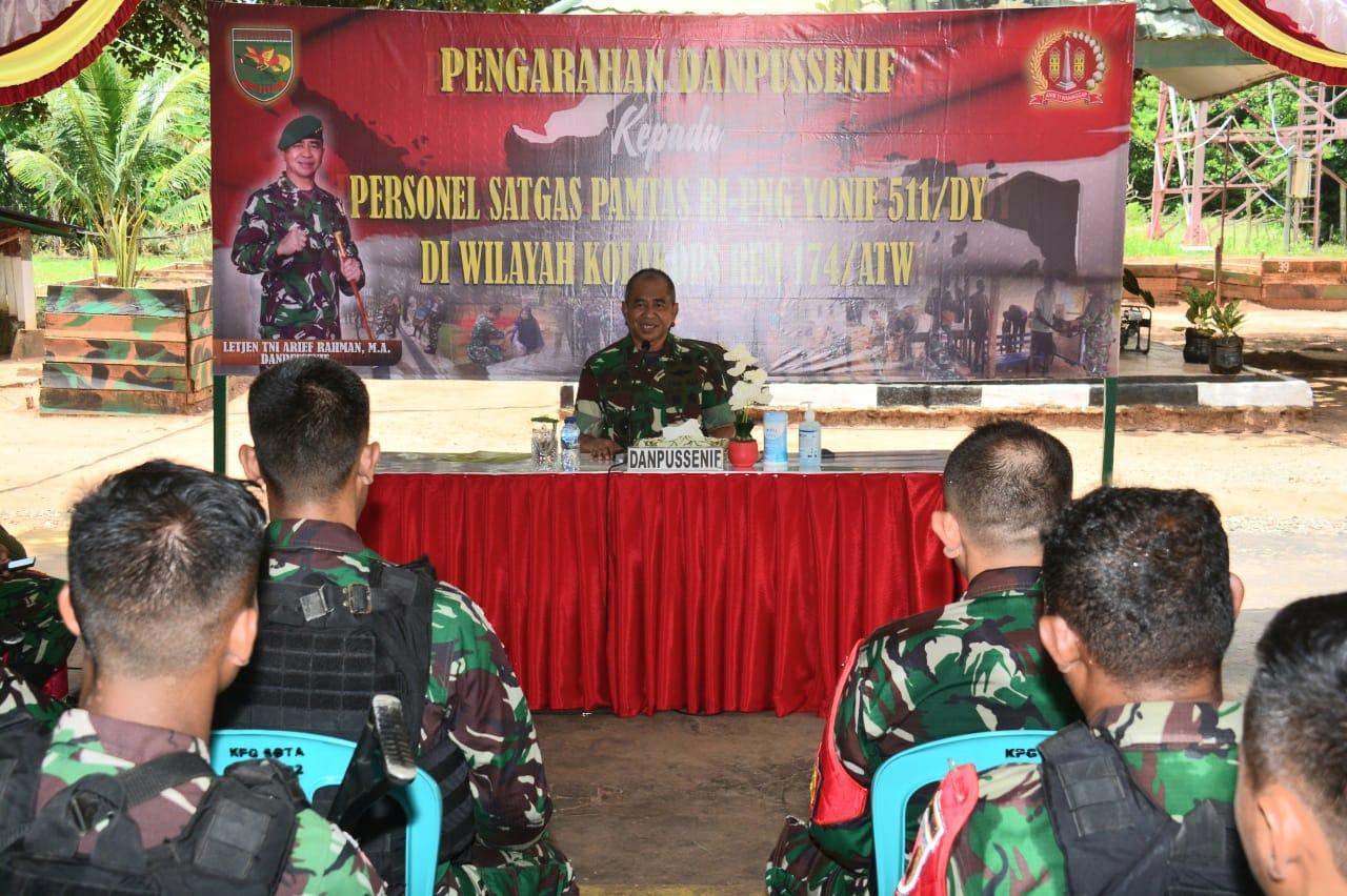 Danpussenif mengatakan bahwa tugas di Papua adalah tugas yang berada dalam situasi yang khusus, jangan membuat pelanggaran, dimana ada kejadian yang melibatkan Prajurit TNI akan menjadi sorotan dunia Internasional dengan isu-isu yang terkadang dimanfaatkan oleh pihak-pihak yang anti TNI maupun anti NKRI.