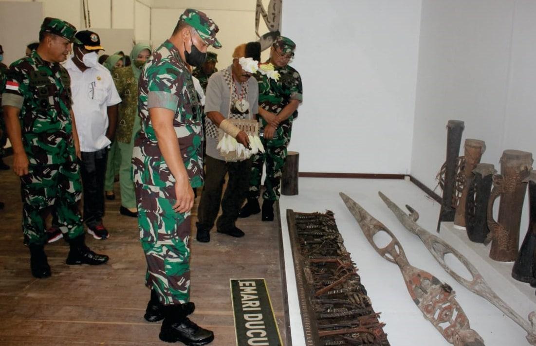 MERAUKE – Panglima Kodam XVII/Cenderawasih Mayjen TNI Teguh Muji Angkasa, S.E., M.M. dengan didampingi Danrem 174/ATW Brigjen TNI E. Reza Pahlevi, S.E beserta Ketua Persit KCK Daerah XVII/Cenderawasih Ny. Erni Arum Nursanti Muji Angkasa dan Ny. Iswati Reza Pahlevi melaksanakan kunjungan kerja ke Kabupaten Asmat – Papua wilayah teritorial Korem 174/ATW Merauke, Kamis (11/8/2022).