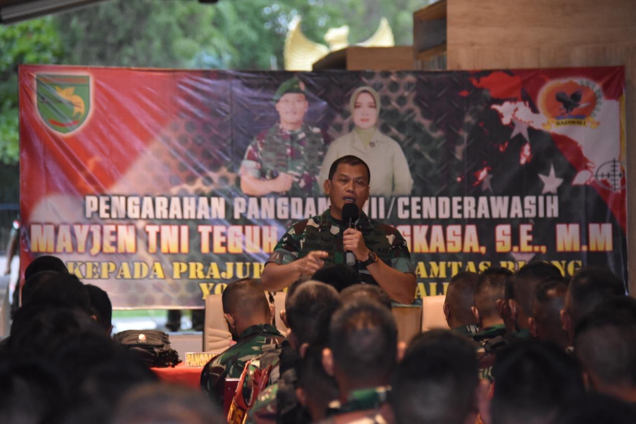 Dalam kesempatan tersebut, Pangdam XVII/Cenderawasih Mayjen TNI Teguh Muji Angkasa selain menyerahkan bingkisan juga memberikan pengarahan kepada Prajurit Satgas Pamtas RI-PNG Yonif 123/Rajawali.