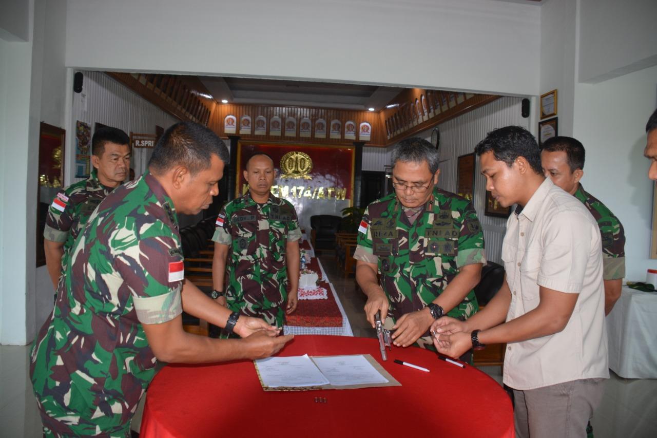 Usai penandatanganan penyerahan satu pucuk senjata jenis Pistol Revolver Cal 38 dan 5 butir munisi 22 mm dilanjutkan penyerahan cinderamata. Hadir dalam kegiatan tersebut Kasrem 174/ATW, para Kasi Korem 174/ATW serta Dandenpal Merauke.