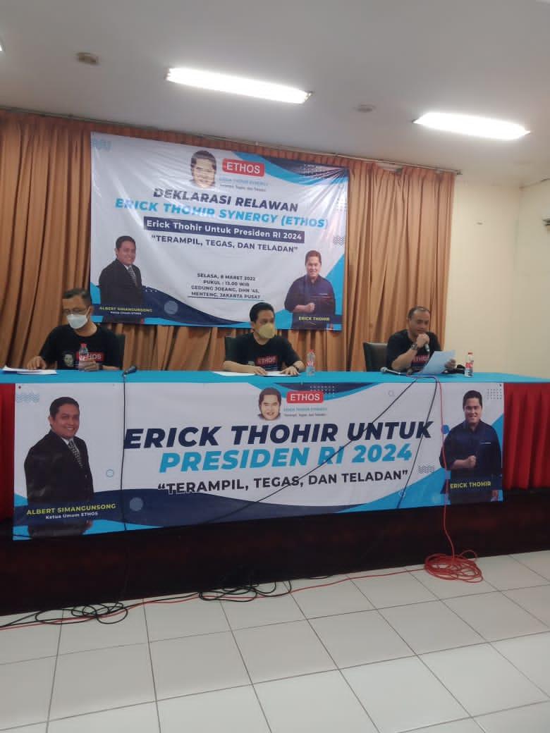 Deklarasi Relawan Erick Thohir Synergi ( ETHOS) Untuk Mendukung Pemenangan Erick Thohir Sebagai Presiden RI 2024