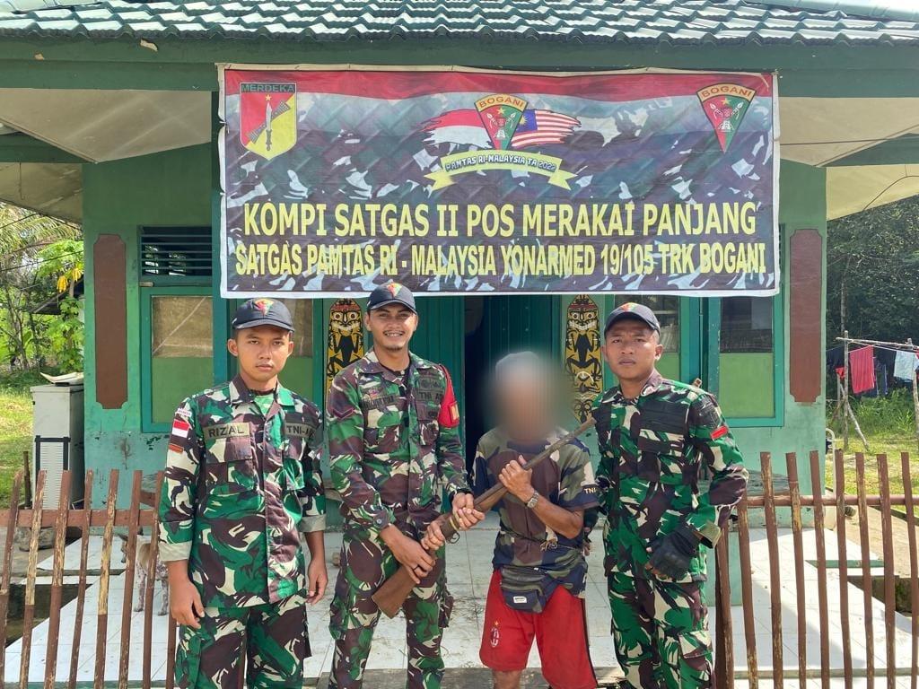 Di Hari Pahlawan Nasional Masyarakat Perbatasan Serahkan Senjata Api Rakitan Kepada Satgas Pamtas Yonarmed 19/105 Trk Bogani