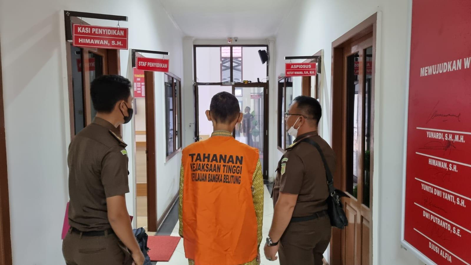 PANGKALPINANG – Tim Penyidik Tindak Pidana Khusus Kejaksaan Tinggi Provinsi Kepulauan Bangka Belitung melakukan penahanan terhadap Bendahara Pengeluaran pada Dinas Kesehatan Babel, IW (47) ke Rumah Tahanan (Rutan) Polresta Pangkalpinang, Senin (31/1/2022) sekitar pukul 17.00 WIB.