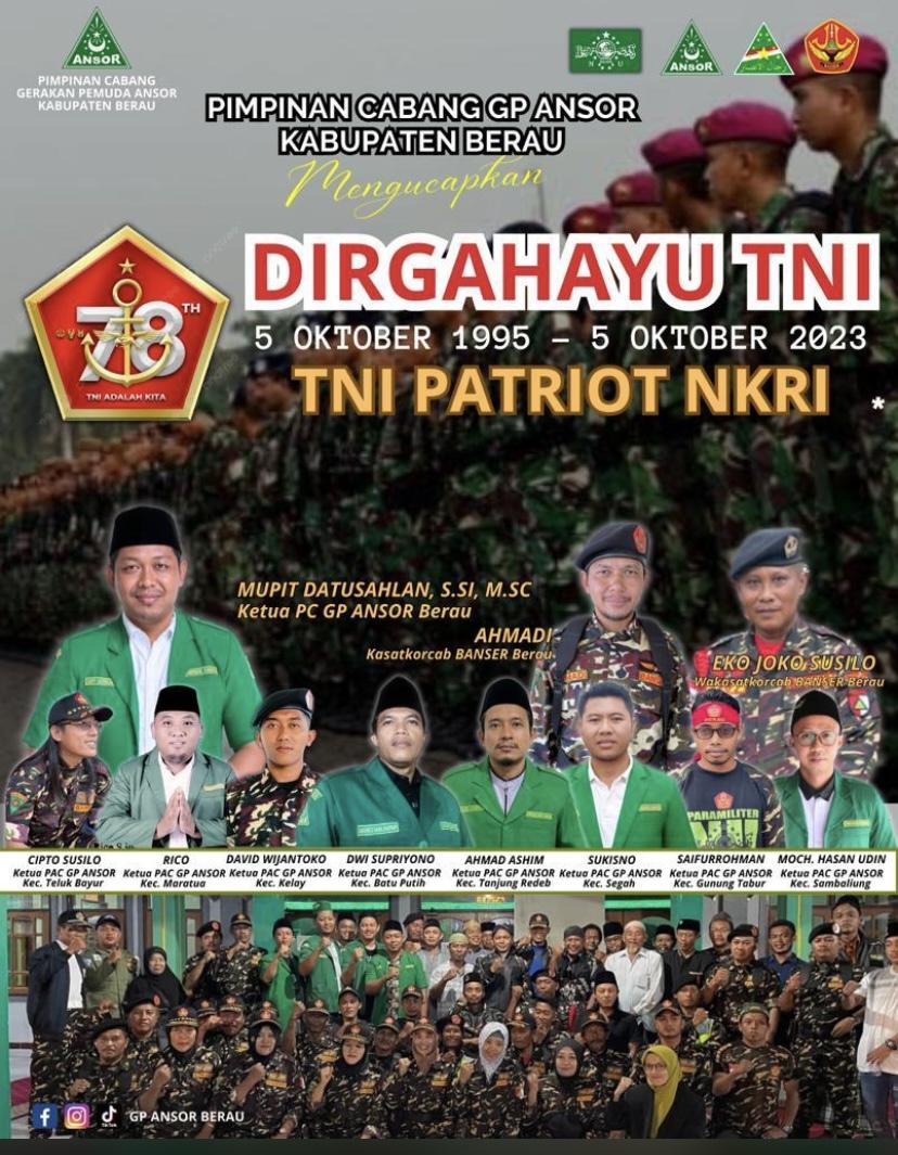 Dengan semangat perubahan dan kemajuan yang diusung oleh Gerakan Pemuda Ansor Kabupaten Berau, diharapkan TNI dapat terus bertransformasi menjadi institusi yang lebih kuat, modern, dan responsif terhadap perkembangan zaman. Ulang tahun yang ke-78 ini menjadi momentum yang tepat bagi TNI untuk merenung, memperbaiki diri, dan terus berinovasi demi menjawab tantangan ke depan yang semakin kompleks dan dinamis.