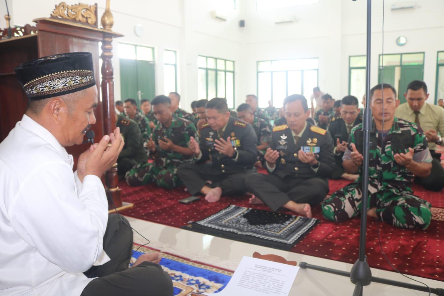 PANGKALPINANG โ Warga Korem 045/Garuda Jaya termasuk juga Komandan Brigjen TNI Ujang Darwis, MDA bersama para prajurit memanjatkan doa bersama.