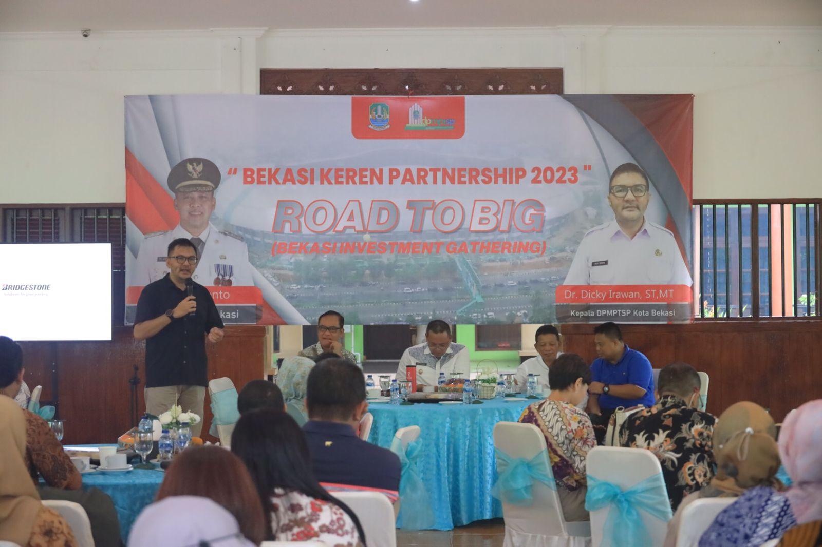 KOTA BEKASI – Dinas Penanaman Modal dan Pelayanan Terpadu Satu Pintu (DPMPTSP) Kota Bekasi menggelar acara Road To Big Bekasi Investment Gathering dengan menghadirkan para pelaku investasi yang berada di Kota Bekasi seperti para perusahaan yang sudah tergabung di Kota Bekasi. Jum’at (16/6/23)