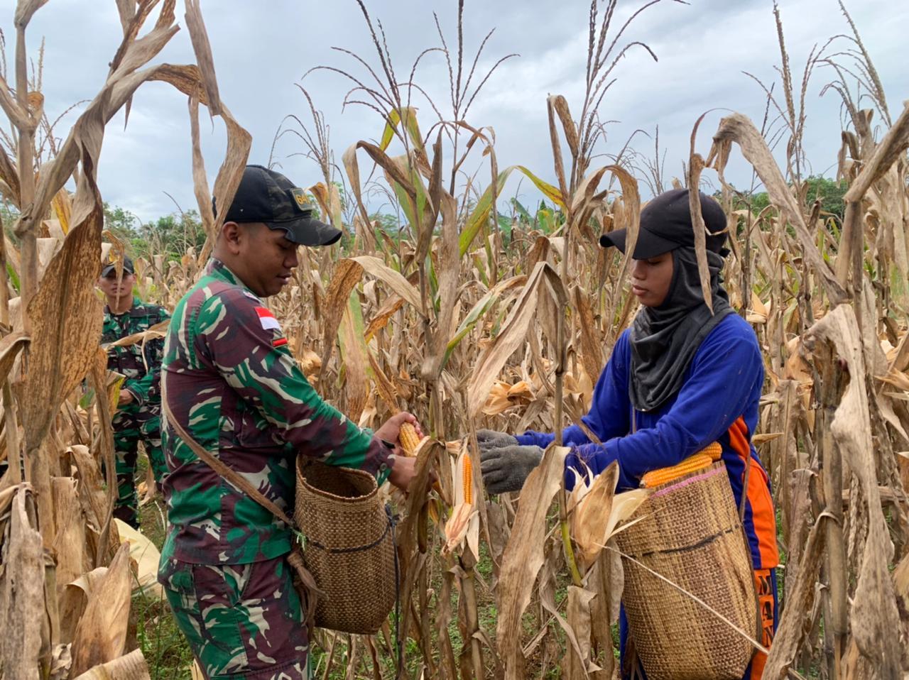 Dukung Ketahanan Pangan, Satgas Pamtas RI-MLY Yonif 645/GTY Panen Jagung Bersama Masyarakat Perbatasan