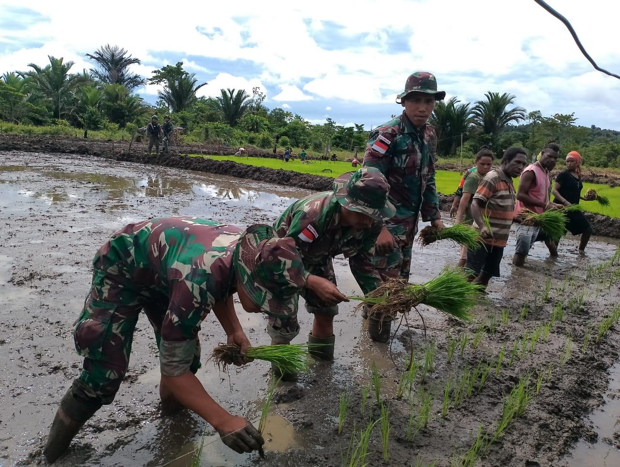 Dukung Ketahanan Pangan, Satgas Pamtas Yonif 126/KC Bantu Warga Tanam Padi di Perbatasan