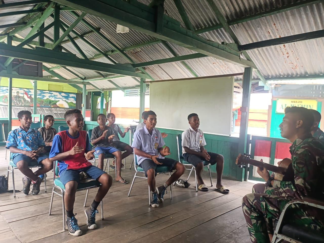 Sebagai bagian dari program kreatif yang dilaksanakan Satgas, pelatihan musik merupakan salah satu kegiatan yang disukai oleh pemuda di perbatasan Papua karena selain menambah bekal ilmu, mereka juga bisa bersenandung riang bersama dengan personel Satgas yang mahir bernyanyi dan memainkan alat musik.