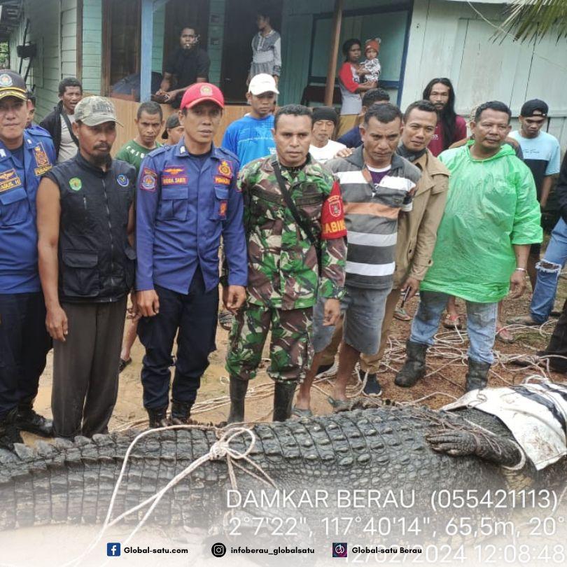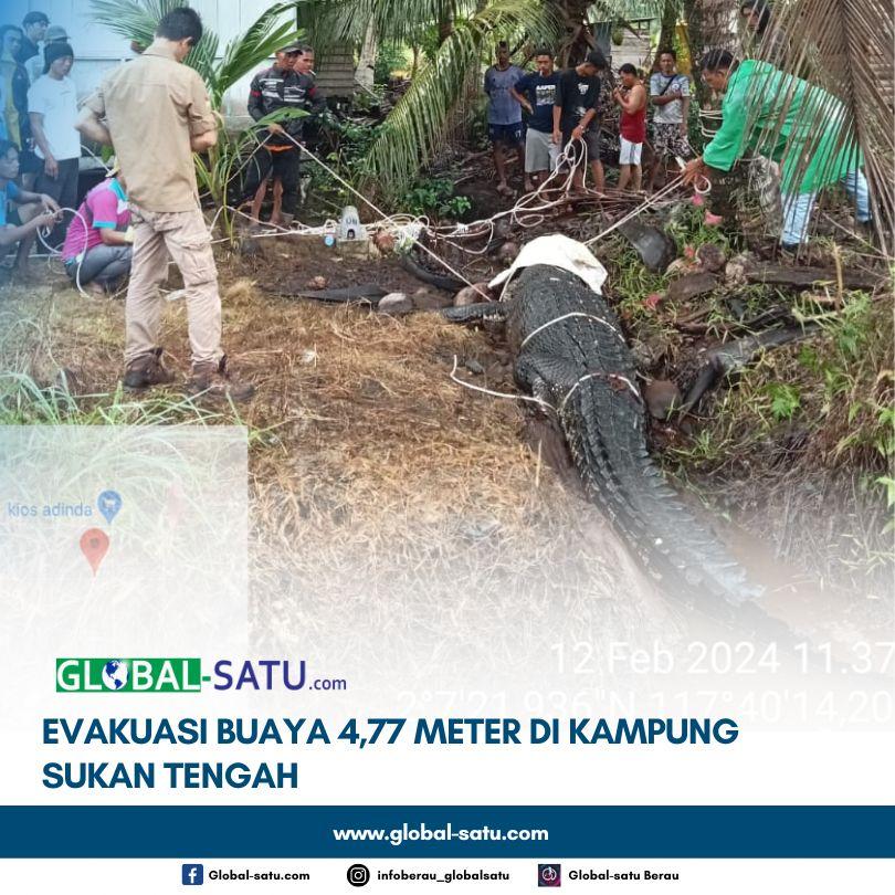 Tim BPBDBerau bersama dengan Babinsa dan warga segera berupaya untuk melakukan evakuasi, sehingga Buaya tersebut berhasil diamankan dengan panjang mencapai 4,77 meter.
