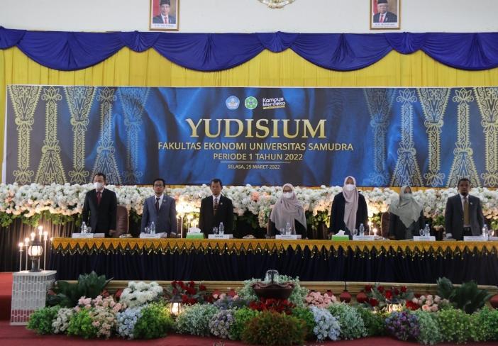LANGSA – Fakultas Ekonomi (FE) Universitas Samudra yudisium 93 lulusan bertempat di Gedung Multiguna, Selasa (29/03/2022).