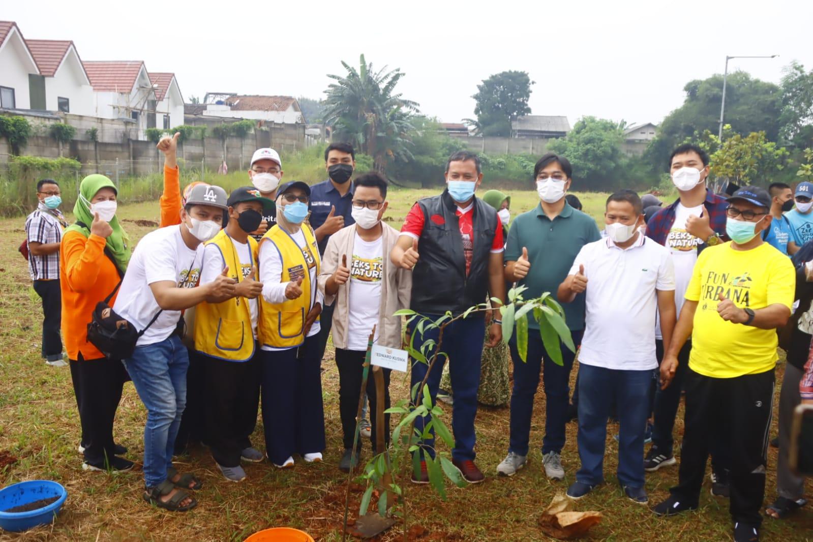 KOTA BEKASI – Dalam rangka penghijauan lingkungan, Pelaksana Tugas (Plt) Wali Kota Bekasi Tri Adhianto didampingi Kepala Dinas Lingkungan Hidup bersama warga masyarakat Padurenan dan komunitas pecinta lingkungan lakukan aksi tanam pohon di area pasar alam vida Kelurahan Padurenan Kecamatan Mustikajaya, Minggu (16/01/2022).